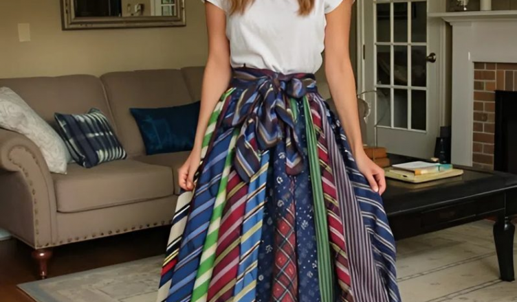 Cette jupe n’était pas un simple vêtement. Elle était faite de souvenirs, de silences et de patience. Chaque morceau de tissu provenait d’une cravate que mon père portait autrefois : pour aller travailler, pour les repas de famille, pour les jours ordinaires qui, aujourd’hui, me semblent précieux. Après sa mort, ces cravates étaient devenues le dernier lien tangible entre lui et moi.