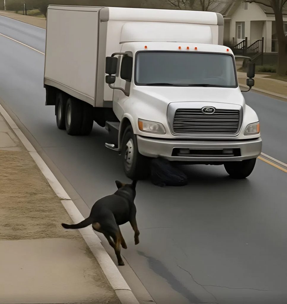Kuljettajan sydän puristui kasaan. Kaikki oli selvää — tämä mustavalkoinen koira oli pennun emo. Joku, joka ei halunnut vaivautua, oli jättänyt pennun keskelle tietä, tuomiten sen varmaan kuolemaan.